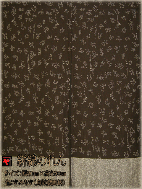 こちらも残り1点!!「古いものは新しい・・・」インテリア空間に使いやすい絣のれん 和のくつろぎをぜひ絣綿のれん(鳥獣戯画柄)色:ちゃサイズ:幅80cm×丈90cm価格: 3,990円レビュー評価: 0.0 レビュー数:0 暖簾?のれん?は日除け、風除け、塵除け、間仕切りなどの機能的要素とお店の屋号や家紋を入れることでの宣伝効果的要素があり、更に現代社会においては、空間のインテリアとしても使用されています。この「絣綿のれん 鳥獣戯画柄」は丈の長さをやや短め(90cm)にすることで、生活に密着するアート的なのれんに仕上がりました。落ち着きのある純和風柄なので、様々な用途でご使用いただけ、プレゼントにも最適品です。●絣綿のれん 鳥獣戯画柄●サイズ:80cm×90cm●色:ちゃ「匠の技」を感じながら、やさしくて、どこか懐かしさを感じさせてくれる<のれん>のご紹介です。布のもつ味わいを大切にしながら染め上げられた生地を使 |